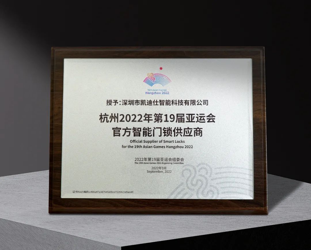 大会现场,杭州亚组委代表为杭州2022年第19届亚运会官方供应商代表进行授牌,伟德app安卓版下载作为“杭州2022年第19届亚运会官方智能门锁供应商”,现场正式获颁授牌。