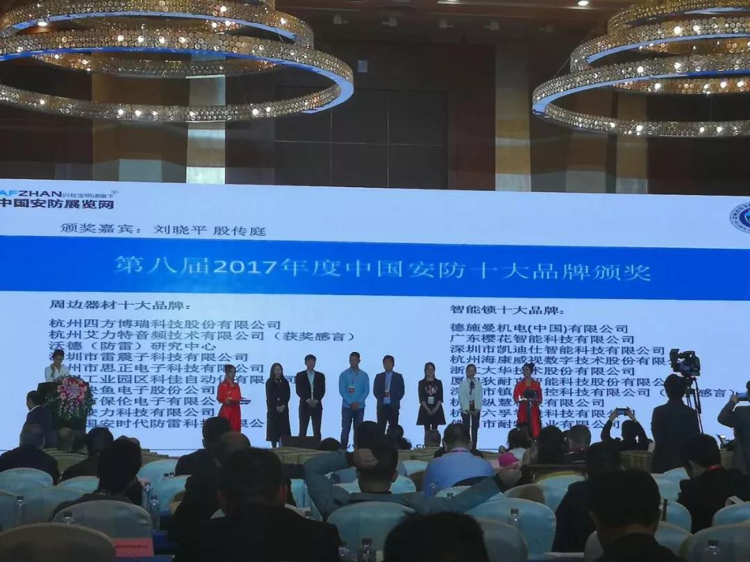 “智能锁类-第八届2017年度中国安防十大品牌”奖。