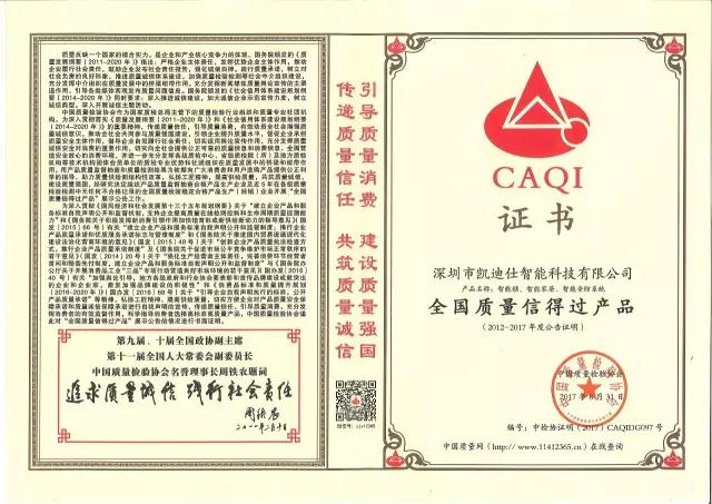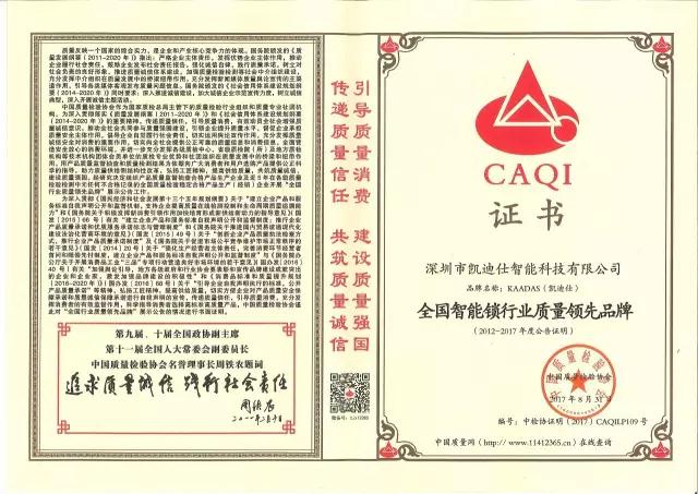 2017年9月5日,Kaadas伟德app安卓版下载喜获由中国质量检验协会颁发的五项大奖,在此之前,伟德app安卓版下载已连续多年获得中国质量检验协会的多项荣誉。如今伟德app安卓版下载凭着一如既往的对品质的坚持和不懈追求,更是一次包揽下五大奖项。