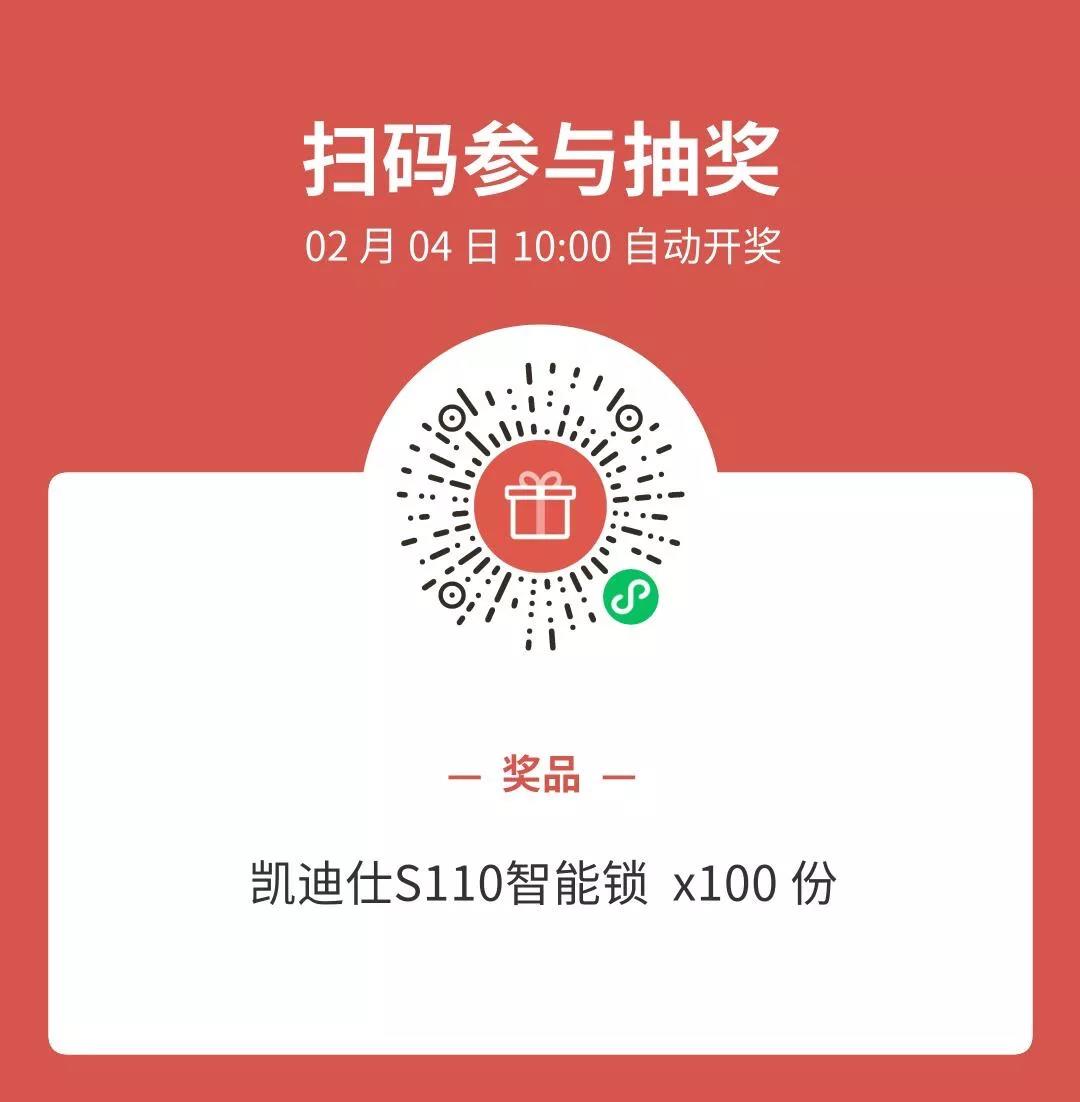 打开图片长按识别,进入【抽奖助手】小程序后,下滑输入口令抽奖,100套智能锁免费送!一起瓜分好运~