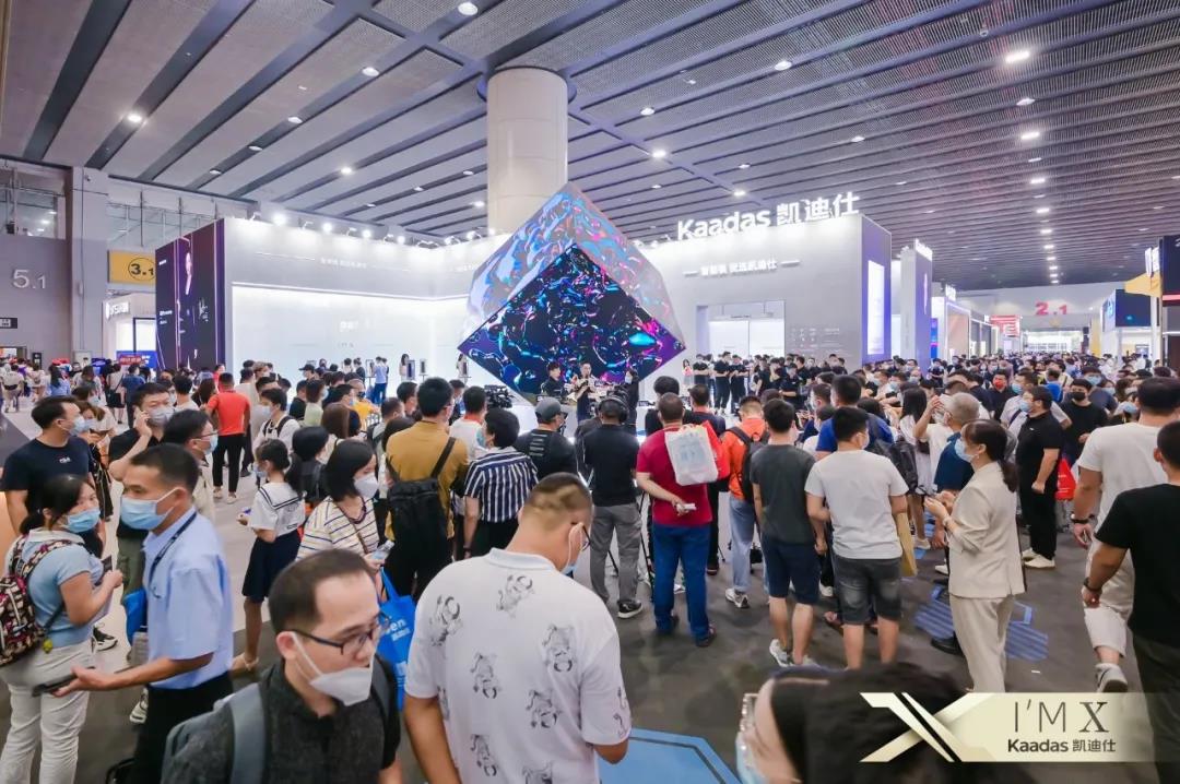 今年的展馆以高达6米的3D魔方屏强势吸睛,酷炫动感的粒子、几何元素不断变幻重组,以极具冲击性的3D视效,吸引了众多宾客现场拍照打卡。