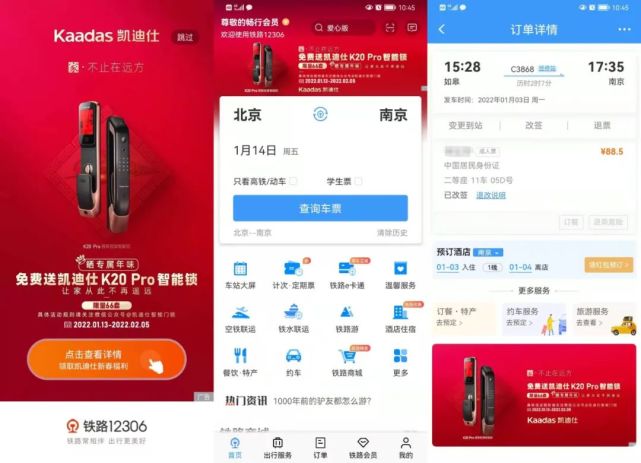 1月13日-15日,伟德app安卓版下载携新春福利活动登陆铁路12306 App开屏页、车票预订页及订单查询页Banner三大黄金广告位,壕送66套K20 Pro猫眼视屏智能锁。活动连续3天强势霸屏,累计斩获30亿+次曝光,传播深度和广度再创新高,轻松占领智能锁行业新春营销制高点,品牌全网火热出圈。