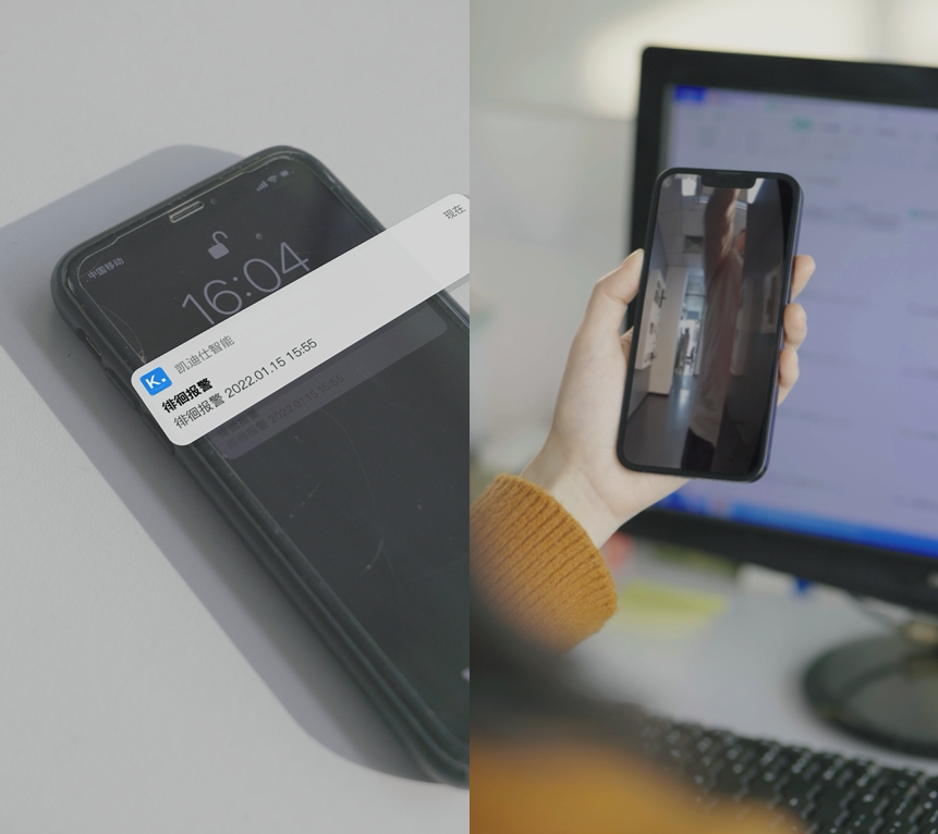 室外面板下方的PIR传感器,感应到门口有人逗留,猫眼镜头都会自动抓拍视频,推送「预警信息」给手机,提醒用户及时处理突发情况。不管什么时间点、人在什么地方,家门相当于拥有了一个24h在线的守护神。