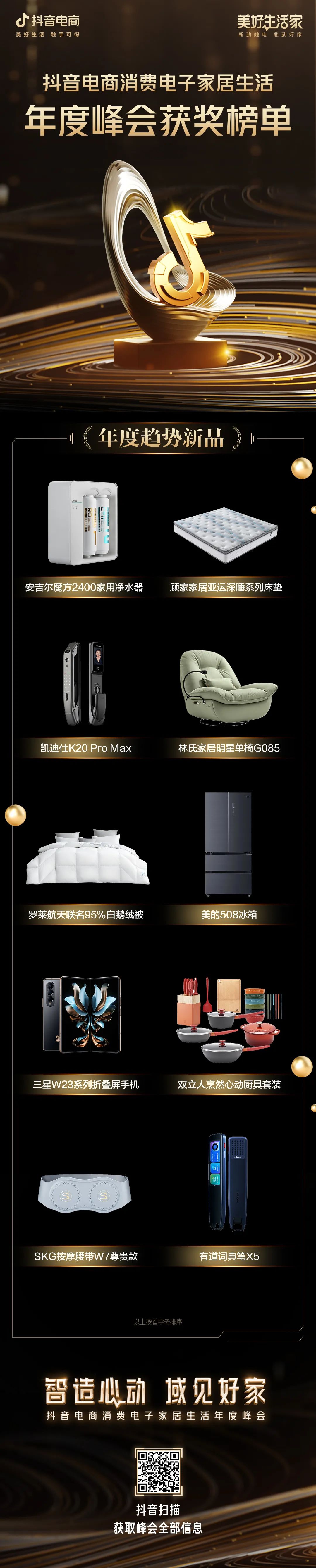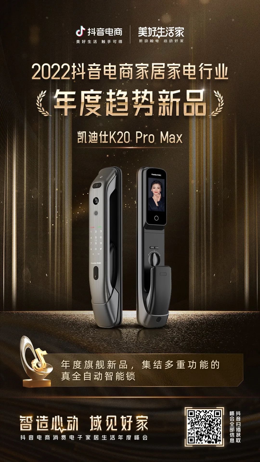 今日,抖音电商消费电子家居生活年度峰会在南京盛大举行。期间,各大重磅荣誉揭晓,伟德app安卓版下载“千里眼”智能锁K20 Pro Max与美的、三星等知名品牌新品一起斩获2022抖音电商家居家电和3C数码行业“年度趋势新品”重磅荣誉,Kaadas伟德app安卓版下载为智能锁行业唯一获奖品牌!