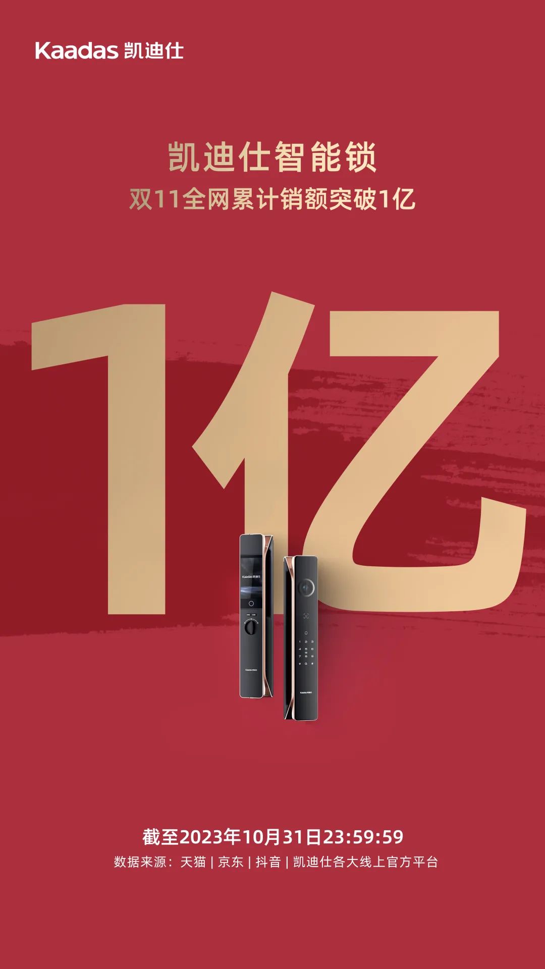双11开门红首战告捷!截至10月31日23:59:59,Kaadas伟德BETVLCTOR网页版双11全网累计销额突破1亿,各大线上官方平台热卖,以优质产品和高曝光度持续引爆市场,再现行业头部品牌风采。